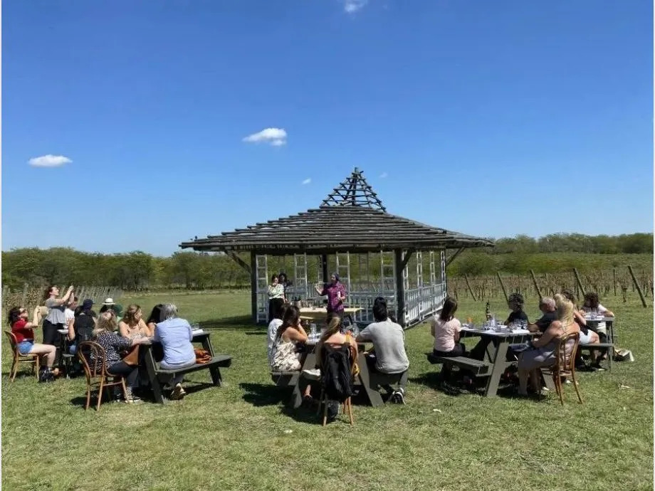 Son en total 37 hectáreas ubicadas en el partido de Madariaga, a solo 800 metros de la ruta 64 y a 10 minutos de Pinamar. Eduardo Tuite, dueño de la bodega, compró el lote en 2022 y hoy la gestiona como un club de productores.