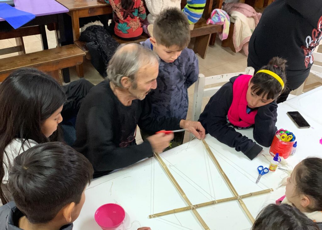 Las niñas y niños del Espacio de las Infancias continúan realizando actividades junto a adultos mayores de la residencia Modelo. Esta semana vino Reinaldo y realizó un taller de barriletes, donde confeccionaron los más lindos y coloridos para salir a remontar el 22 de julio para celebrar el Día de la Amistad.