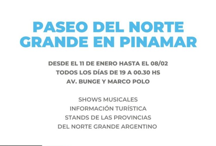 Del 11 de enero al 8 de febrero, la ciudad de Pinamar será sede de la cuarta edición del Paseo del Norte Grande, una propuesta que reúne la cultura, el turismo y la gastronomía de diez provincias del norte argentino ...